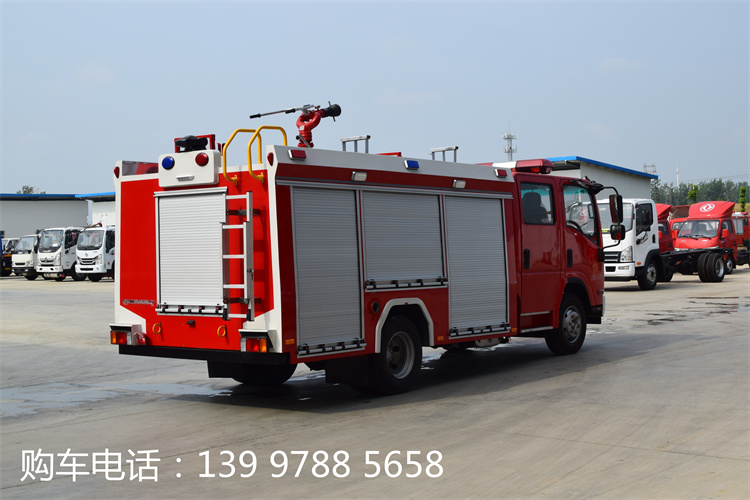 江特牌慶鈴泡沫消防車罐體容積3.8立方米,整車型號為:JDF5100GXFPM40/Q6