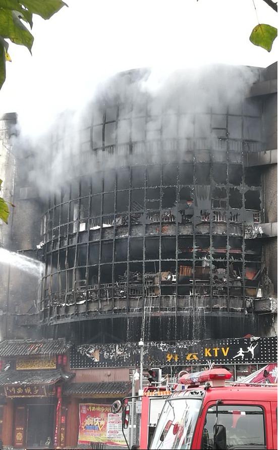 噴水降溫以免復燃。直到下午1點45分左右,消防車才停止噴水,大樓四周的煙霧